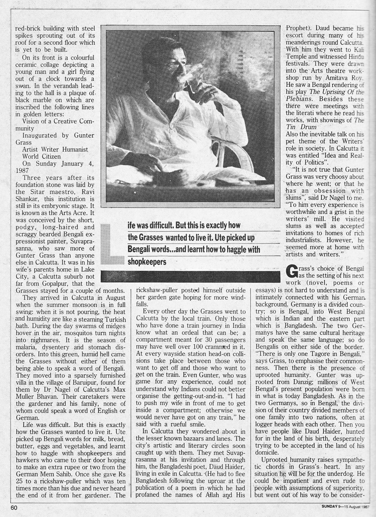 His themes come from his personal interactions with its urban milieu - its sickness and sordidness, its violence and vulnerability and all that compounds its existential agony. In the 1960s and 1971s, his work was influenced by the turbulence and political violence of Kolkata.