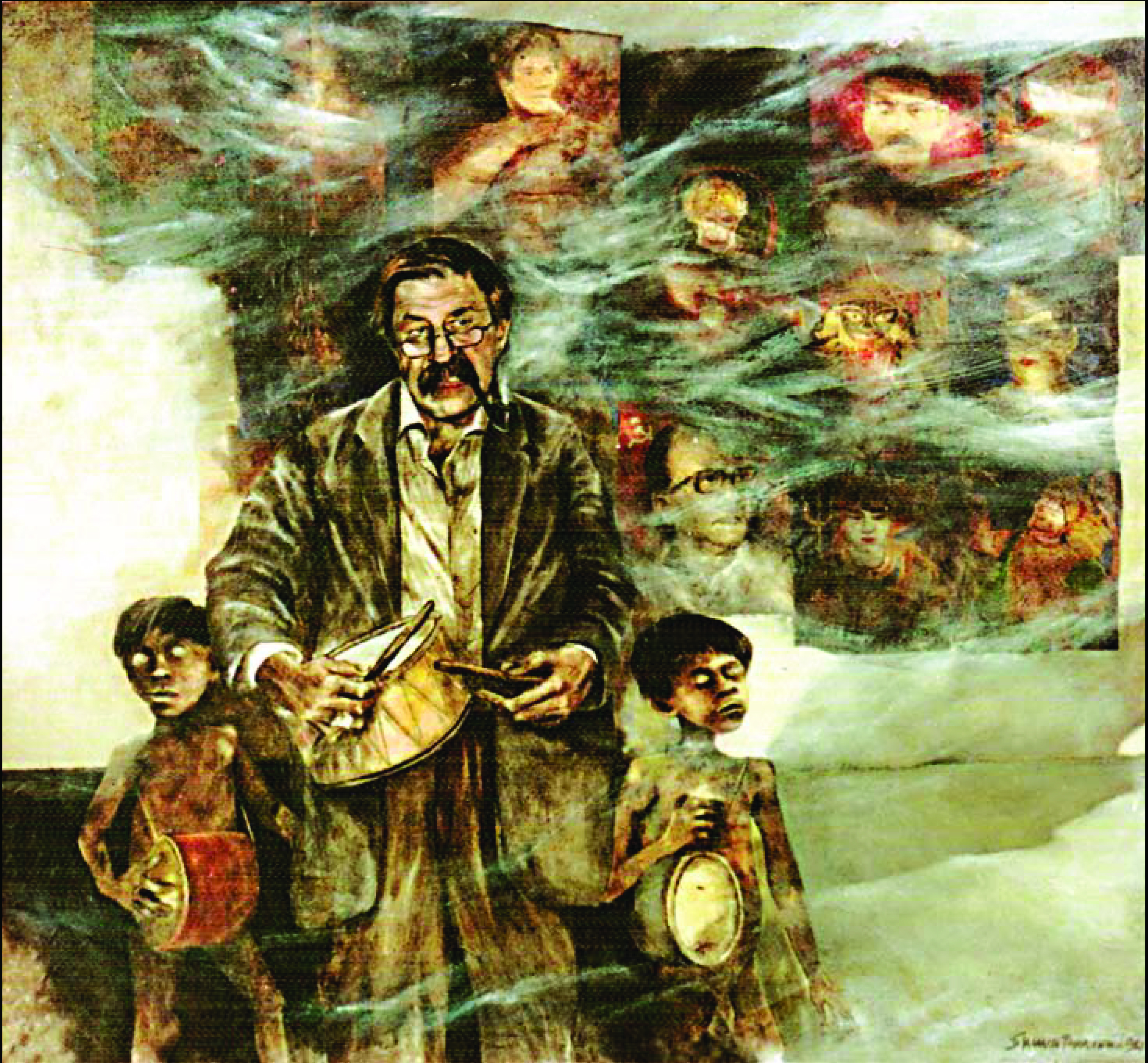 The dramatis personae of Shuvaprasanna painterly domain have been these edifices, these concrete structures that form landmarks of Calcutta: Victoria Memorial, Paanch Mathaar Mor, statues of Bidyasagar, Raja Ram Mohan Roy. And when the imagery is deftly woven into the subtext, they present a point of view that is uniquely personal in context to the narrator and the narrative.