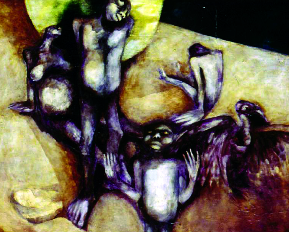 Man & Space are the other series that make recurring appearance as sketches, drawings, paintings and prints. While the latter featured nightmares of people suffering from drought and famine, the former made a reference to time in its multiple interpretations, ranging from cosmic continuity to its temporal nature, triggered by the German obsession with punctuality that Shuva encountered in that country.