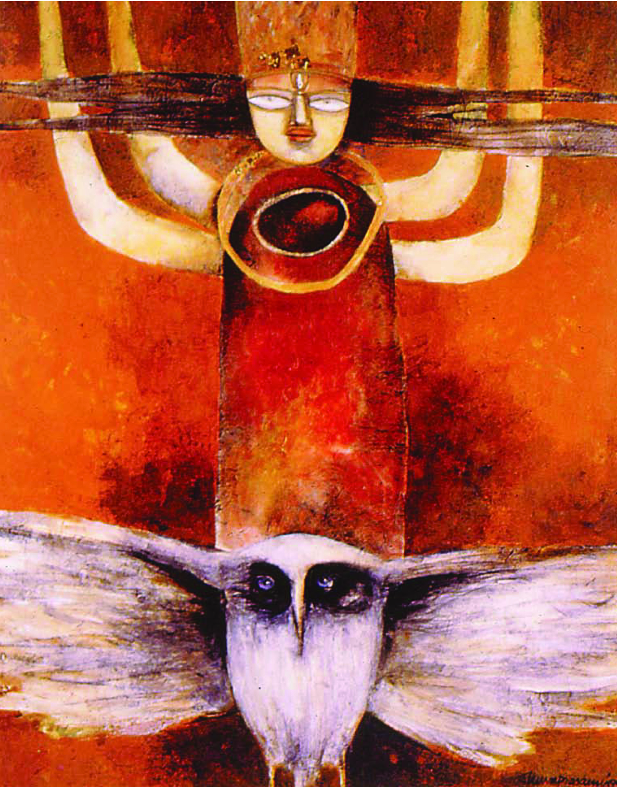 His themes come from his personal interactions with its urban milieu - its sickness and sordidness, its violence and vulnerability and all that compounds its existential agony. In the 1960s and 1971s, his work was influenced by the turbulence and political violence of Kolkata.