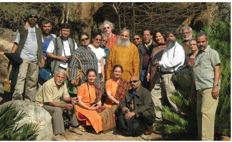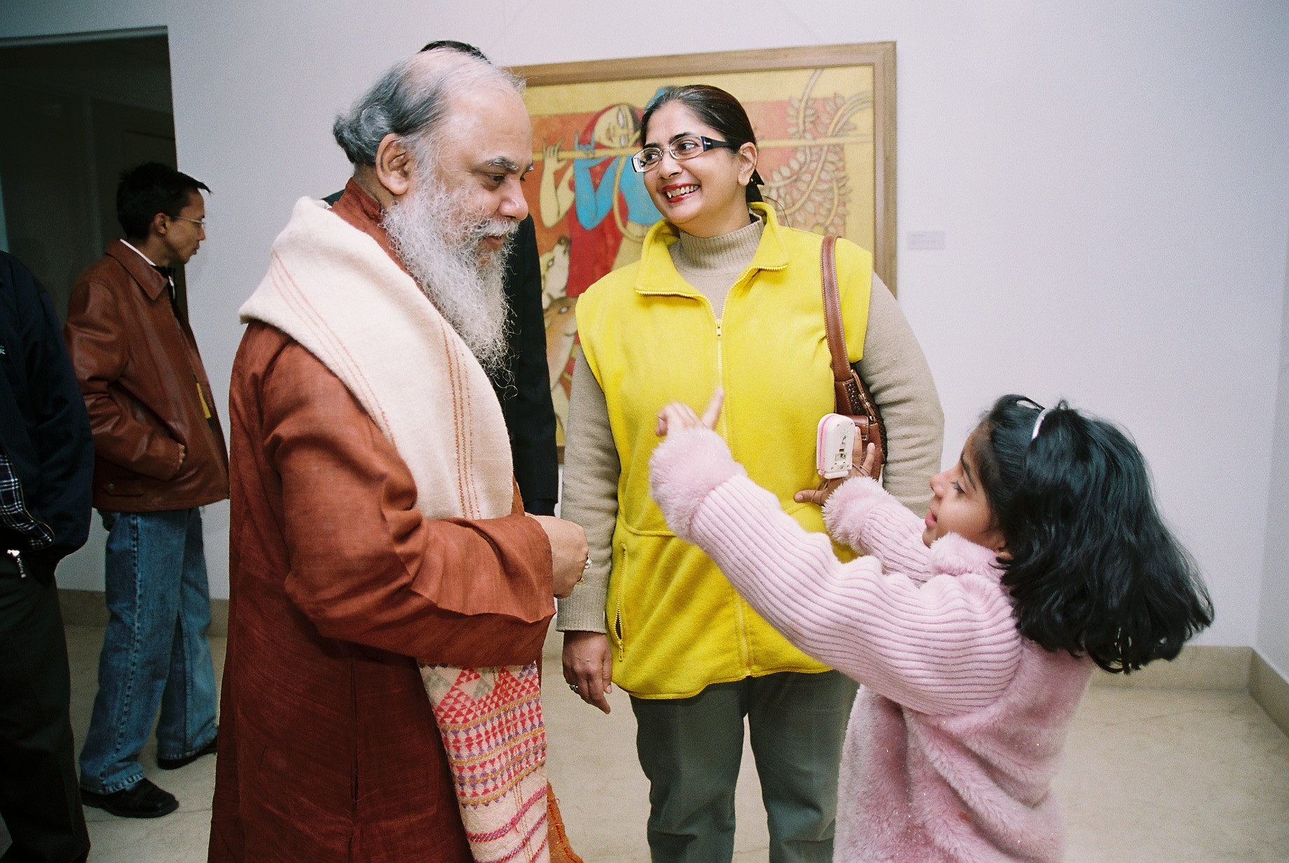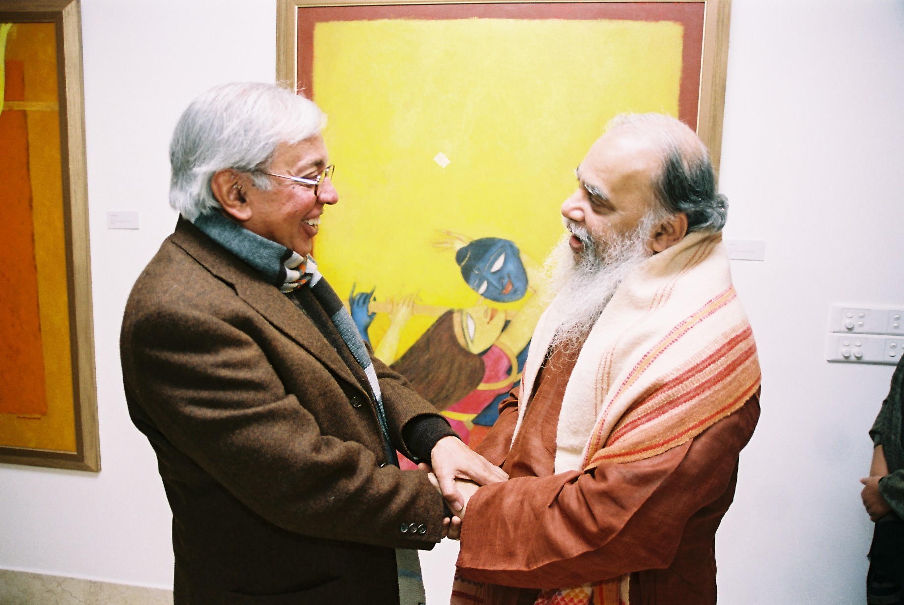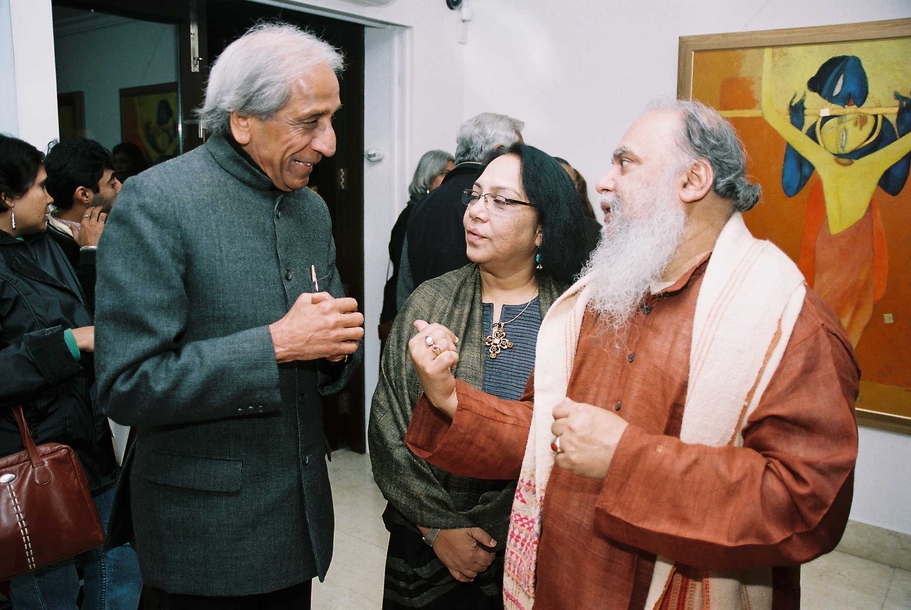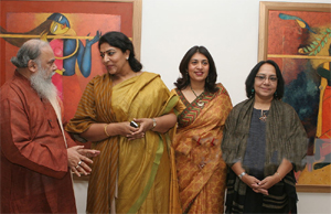Painter Shuvaprasanna (L) with Renuka Choudhary (2nd form left), Union Minister for Tourism, at the Art Alive Gallery in Pancheel Park, New Delhi, on the 12th of January 2006